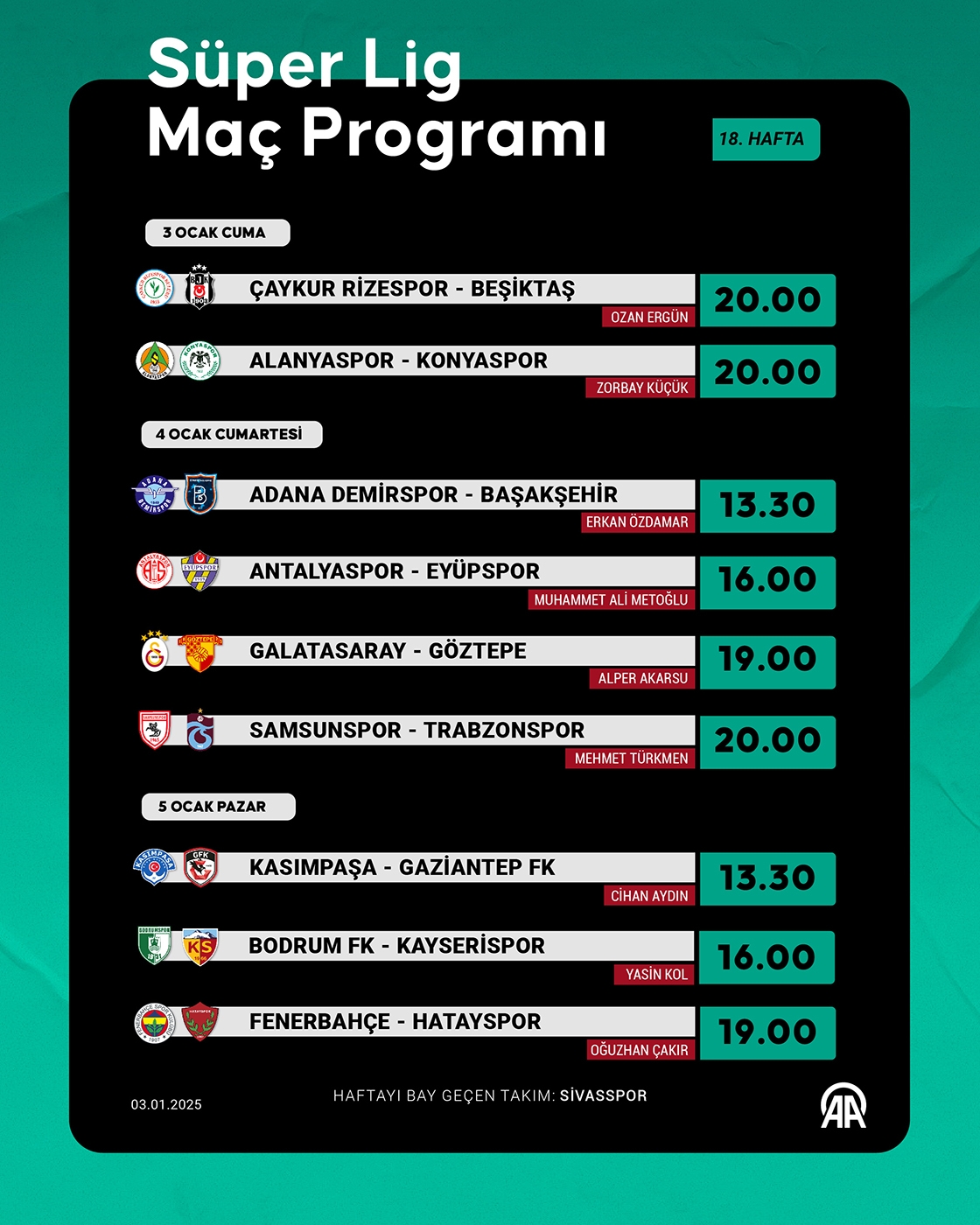 Süper Lig 18. hafta programı