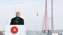 "Firmalarımız Güney Koreli iş ortaklarıyla birlikte kolları sıvadı, 5 binin üzerinde personelin, 740 iş makinasının geceli gündüzlü çalışmasıyla köprümüzü söz verdiğimiz tarih olan bugünkü açılışa hazır hale getirdi. Dünyada böylesine devasa bir eseri bu kadar kısa sürede tamamlayacak bir başka ülke var mıdır bilmiyorum. Türkiye orta açıklığı itibarıyla dünyanın en uzun köprüsüne sahip Japonya'yı geride bırakarak bu alanda ilk sıraya yerleşti. Tabii orta açıklık uzunluğu bakımından dünyadaki ilk 10 köprünün 3'ünün ülkemizde olduğunu da hatırlatmak isterim. Marmara'yı otoyollarıyla, köprüleriyle, tünelleriyle çepeçevre kuşatan otoyol projemizin bugün açılışını yapacağımız kısmı 2,5 milyar avroluk yatırım bedeline sahiptir. Peki bu 2,5 milyar avroluk yatırım bize ne kazandıracaktır? Ülkemizin bu yatırımla sadece zamandan, akaryakıt tüketiminden ve karbon salınımı azalımından kazancı yıllık ne kadar olacak biliyor musunuz? 415 milyon avro. Şehirlerimiz arasında güvenli, konforlu, hızlı şekilde yapılacak seyahatin kolaylığına, rahatlığına, huzuruna değer biçilir m? Yapılan hesaplamalar bu projenin ekonomimize üretimde 5,3 milyar avro, istihdama 118 bin kişi, milli gelirde 2,4 milyar avro ilave katkısının olacağına işaret ediyor. Velhasıl neresinden bakarsanız bakın ülkemiz için kazanç, milletimiz için iftihar kaynağı bir eserin açılışını yapıyoruz."dedi.