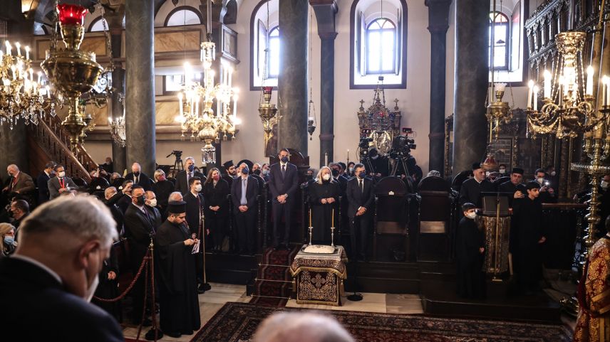 Miçotakis, Patrikhane'de Ortodoksluk Bayramı dolayısıyla düzenlenen ve yaklaşık bir saat süren ayine katıldı.