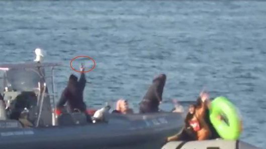 Tehlikeli manevralarla göçmen botunun ilerlemesine engel olan Yunan unsurları göçmenlere sopa ile vuruyor, silah doğrultuyor ve botu batırmak için teşebbüslerde bulunuyor.