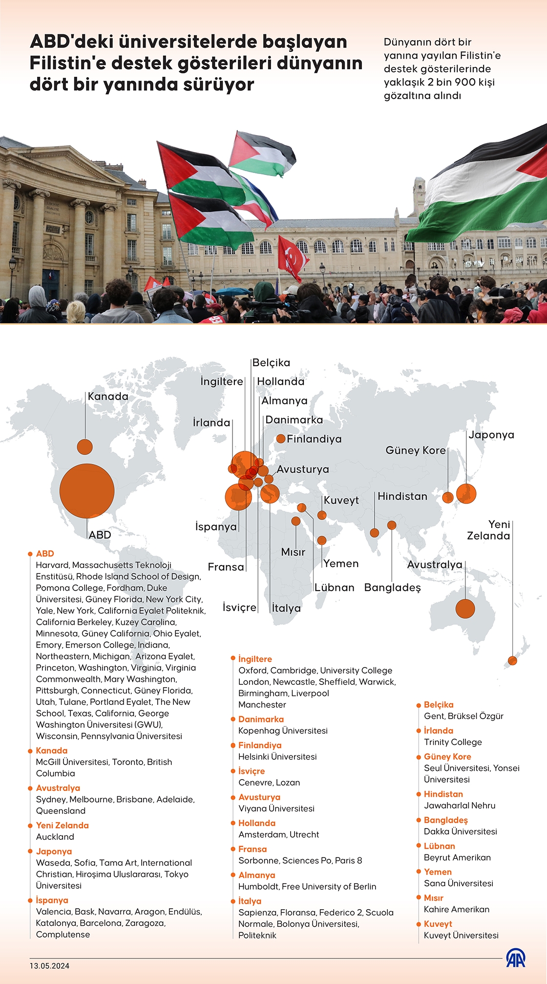 ABD'deki üniversitelerde başlayan Filistin'e destek gösterileri dünyanın dört bir yanında sürüyor