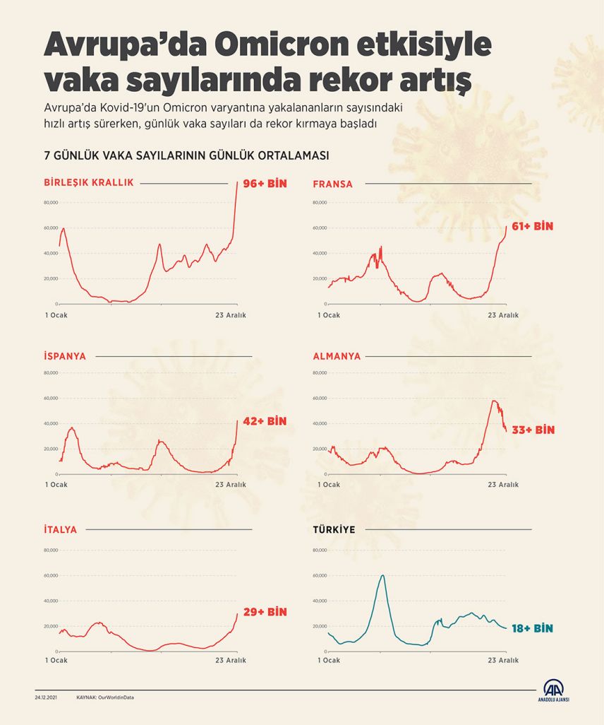 Avrupa’da Kovid-19'un Omicron varyantına yakalananların sayısındaki hızlı artış sürerken, günlük vaka sayıları da rekor kırmaya başladı.