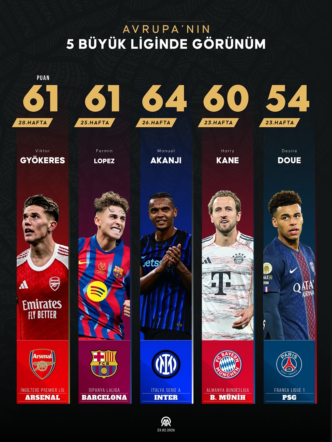 Avrupa'nın 5 büyük futbol ülkesi İngiltere (Premier Lig), İspanya (LaLiga), İtalya (Serie A), Almanya (Bundesliga) ve Fransa'da (Ligue 1) zirve mücadelesine hafta sonu devam edildi.