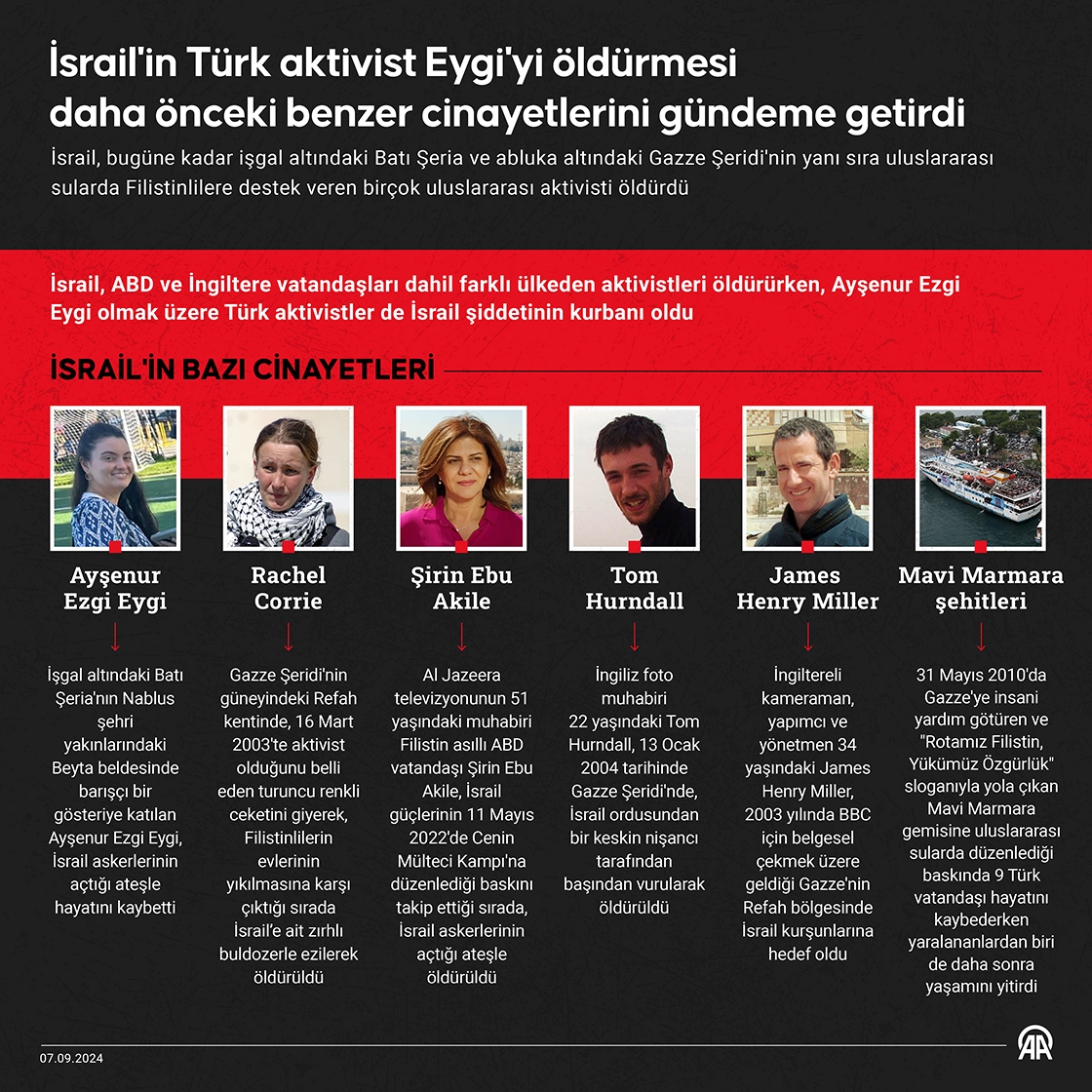 İsrail'in Türk aktivist Eygi'yi öldürmesi daha önceki benzer cinayetlerini gündeme getirdi