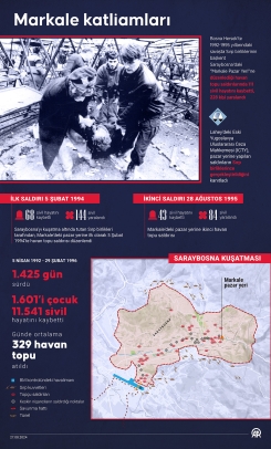 Bosna Hersek'te 1992-1995 yıllarındaki savaşta Sırp birliklerinin başkent Saraybosna'daki 'Markale Pazar Yeri'ne düzenlediği havan topu saldırılarında 111 sivil hayatını kaybetti, 228 kişi yaralandı.