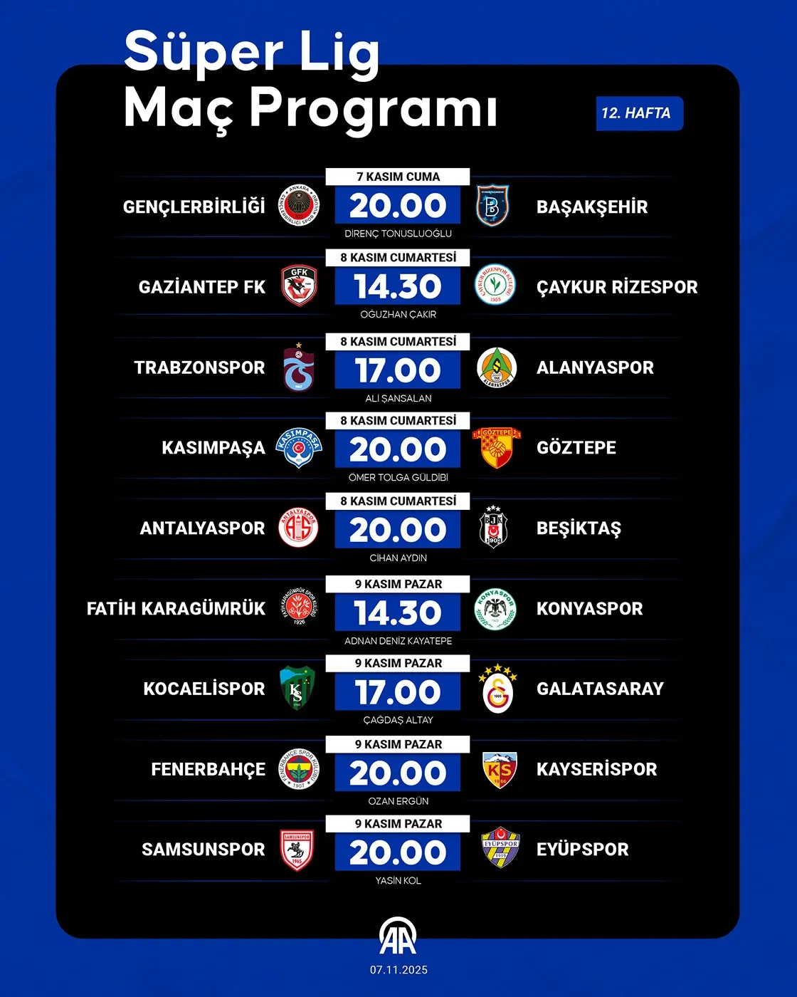 Trendyol Süper Lig'de 12. hafta maçları 7 Kasım Cuma günü oynanacak Gençlerbirliği-Başakşehir maçıyla başlayacak. (Grafik: Kemal Delikmen/AA)