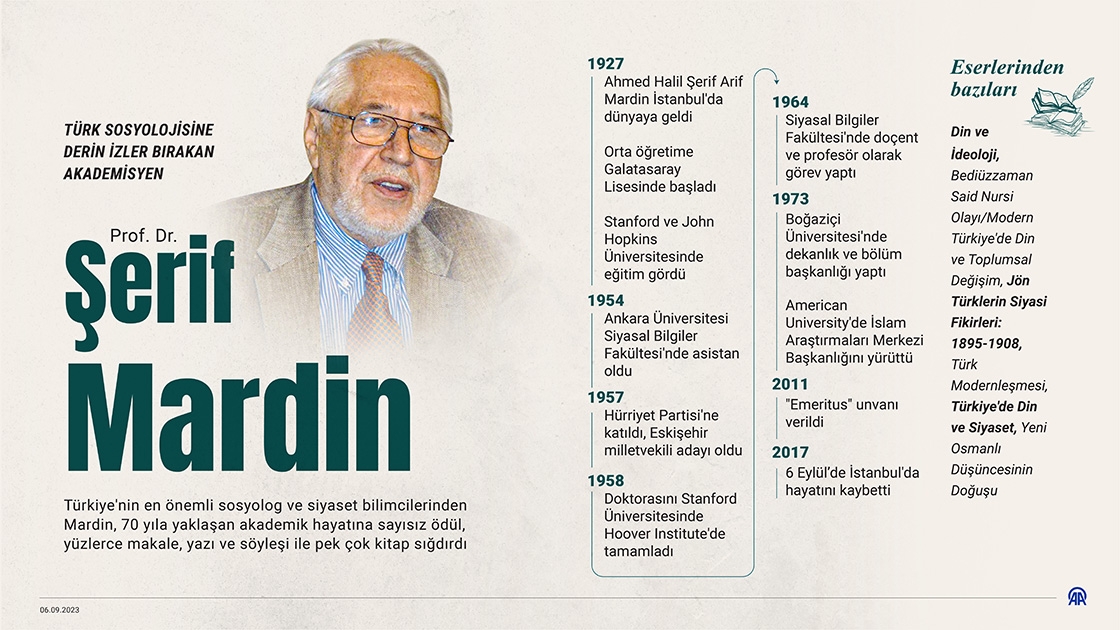 Sosyolog Mardin, 70 yıla yaklaşan akademik hayatına sayısız ödül, yüzlerce makale, yazı ve söyleşi ile pek çok kitap sığdırdı.