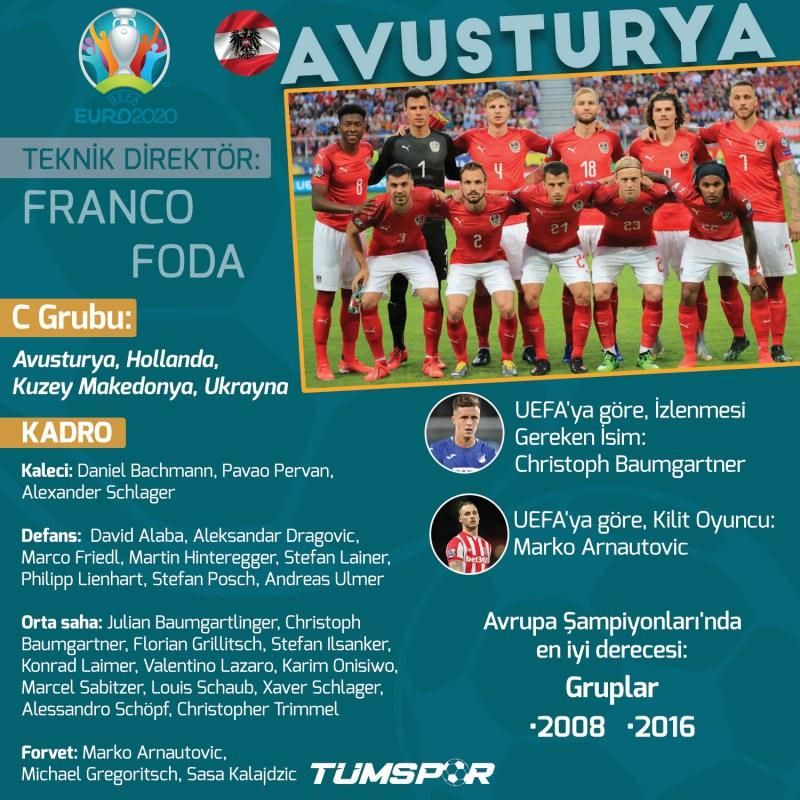 AVUSTURYA: Bachmann, Ulmer, Dragovic, Hinteregger, Alaba, Lainer, Sabitzer, Baumgartner, Schlager, Laimer, Kalajdzic.