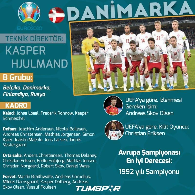 DANİMARKA: Schmeichel, Kjaer, Maehle, Christensen, Delaney, Jensen, Wass, Wind, Höjbjerg, Braithwaite, Poulsen.