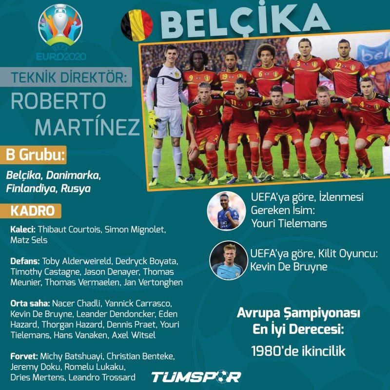 B Grubu'nda Danimarka, Belçika'yı ağırlayacak. Karşılaşma, Danimarka'nın başkenti Kopenhag'da bulunan Parken Stadı'nda 19.00'da oynanacak.