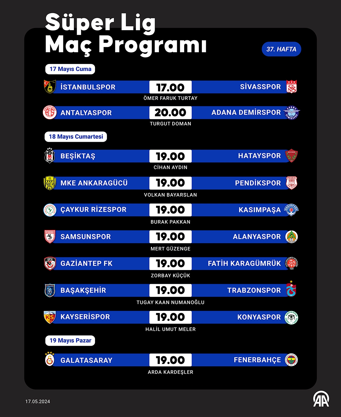 Trendyol Süper Lig'de 37. haftanın açılışı iki maç ile başlayacak. (Grafik: Muhammed Ali Yiğit/AA)