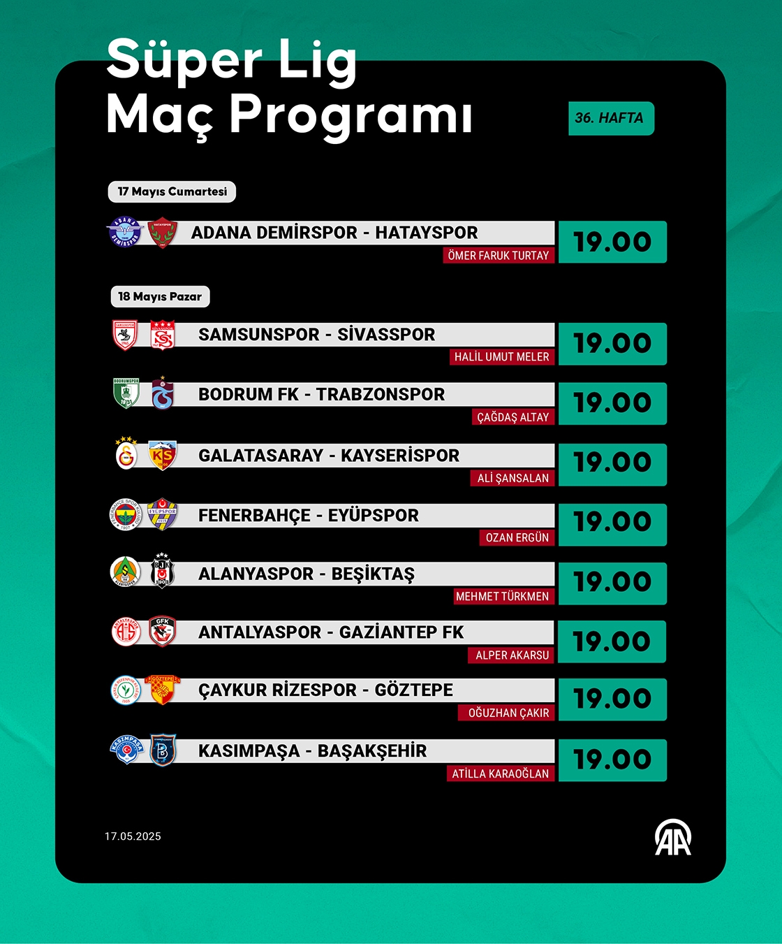 Trendyol Süper Lig'de 36. hafta Adana Demirspor ile Hatayspor arasında oynanacak maç ile başlayacak.