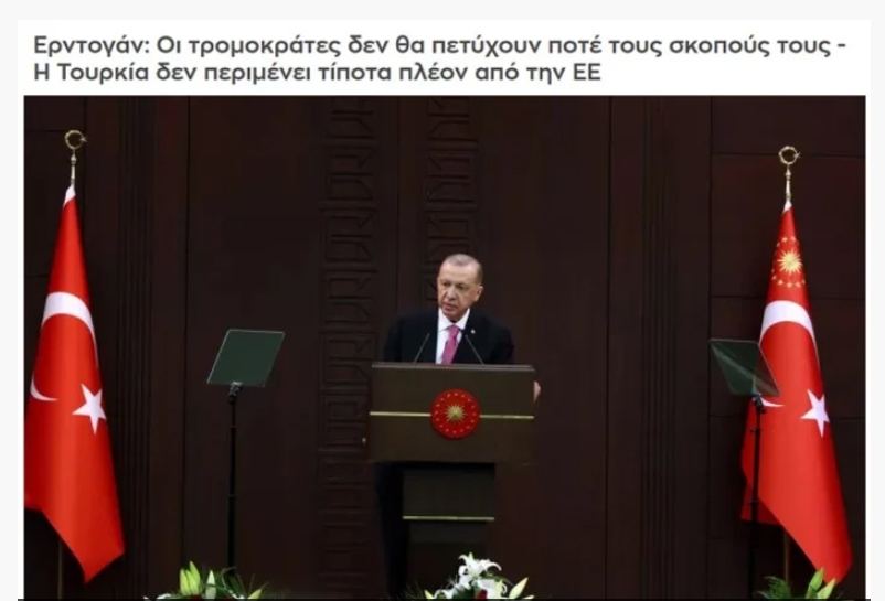 Yunanistan merkezli SKAI televizyonu, "Türkiye'nin artık AB'den hiçbir beklentisi yok" başlığıyla okurlarını bilgilendirdi.