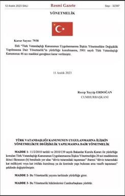 Yabancıların Türkiye'de taşınmaz mal satın alarak Türk vatandaşlığı kazanma uygulamasında değişiklik yapıldı.