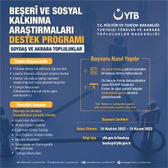 Yurtdışı Türkler ve Akraba Topluluklar Başkanlığı (YTB) hayata geçirdiği projelerle ülkemiz ile köklü ilişkilere ve derin bağlara sahip toplumların; beşerî, siyasi ve ekonomik olarak kalkınmalarına yardımcı oluyor. YTB bu kapsamda kardeş, soydaş ve akraba topluluklara yönelik bilimsel araştırmaların desteklenmesi amacıyla Beşeri ve Sosyal Kalkınma Araştırmaları Programı’nı (BESKAP) hayata geçiriyor. Program ile birlikte Türkiye’deki ve yurt dışındaki araştırmacıların yapacağı ortak başvurularla, ikili ve çoklu akademik ağların geliştirilmesi hedefleniyor. BESKAP kapsamında yapılacak araştırmalar, ilgili ülkelerin politikaları için de yol gösterici nitelikte olacak. Bu çerçevede politika belgesi niteliğindeki araştırmalara öncelik verilecek.