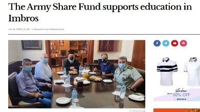 Yunanistan Savunma Bakanlığı'na bağlı Ordu Hisse Fonu, Gökçeada ve Bozcaada'nın "Yunan okullarına" yardım etme girişimlerine desteğini, bir bütün olarak Rum toplumuna destek vermek ve özellikle Helenizmi desteklemek için asil çalışmasına finansal olarak (banka sponsorluklarından) katkıda bulunarak kanıtladı. Bununla adaların Rum İlkokullarının çocuklarını yetiştirecek (İmbros'ta 7 ve Bozcaada'da bir Rum okulu).