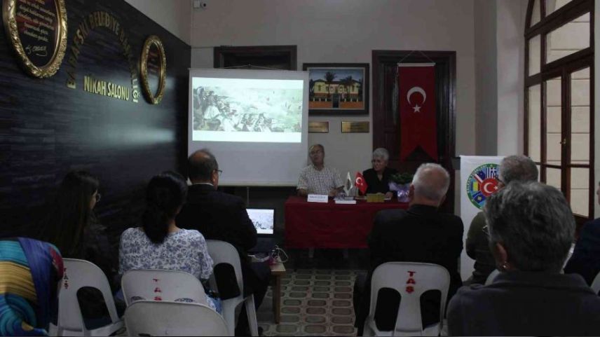 Konuşmaların ardından araştırmacı-tarih öğretmeni Cevat Sedes, katılımcılara 1821 Mora katliamı hakkında bilgilendirmede bulundu.