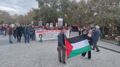 Yürüyüşe katılanlar ellerinde İsrail aleyhinde pankartlar taşıyarak Filistine Özgürlük, Kahrol İsrail, Filistinden Defol gibi sloganlar attılar.