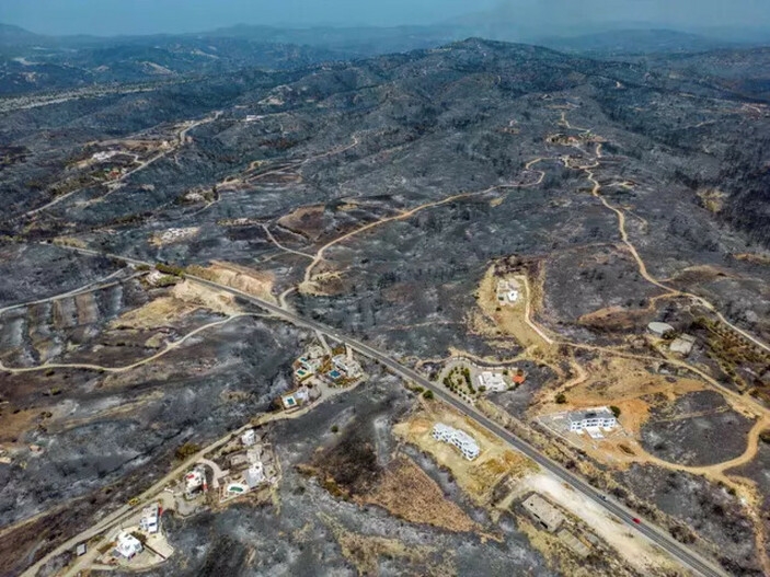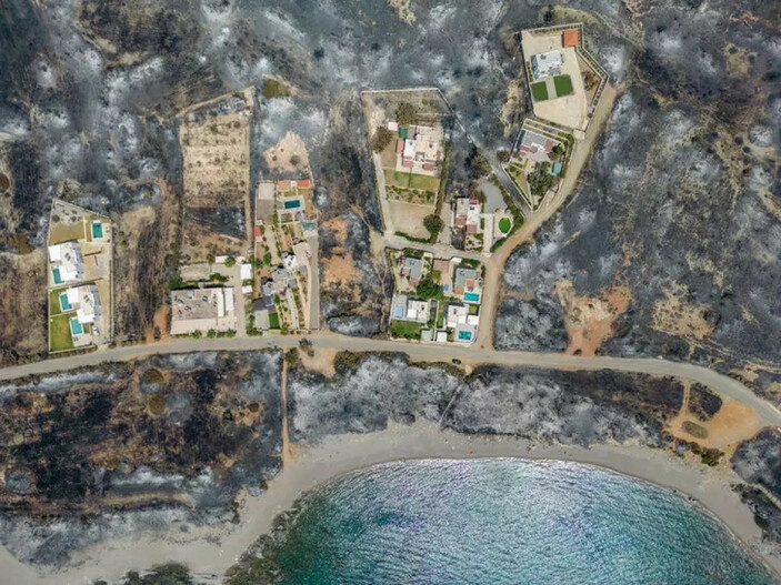 Rodos Adası başta olmak üzere birçok bölge zarar gördü. Yangınla mücadele sürerken, yangının hasarını niteleyen görüntüler ortaya çıktı.