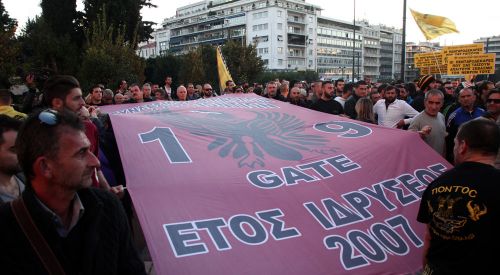 Atina Sintagma Meydanı'nda bulunan parlamento önünde toplanan yaklaşık 3 bin Pontus kökenli gösterici, hakaret içeren sloganlar eşliğinde Bakan Filis'in istifasını istedi. Tüm Pontuslular Federasyonu tarafından organize edilen gösteriye çok sayıda Türkiye kaşıtı kişi de katıldı. Merkez sağ ND milletvekilinin dövüldüğü gösteriye çoğunluğu ND ve bir iktidar partisi Syriza olmak üzere ondan fazla milletvekili, yerel yöneticiler, eski bakanlar, ND liderlik yarışına giren Adonis Georgiadis, 5 kadar ırkçı ve Neonazi Altın Şafak milletvekili ile örgüt taraftarı da iştirak etti.