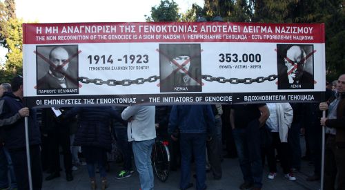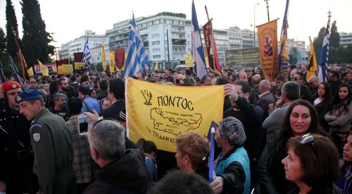 Yunanistan Tüm Pontuslular Federasyonu, Milli Eğitim ve Din İşleri Bakanı Nikos Filis'in "Pontus soykırımı olmamıştır" açıklamalarını Atina merkezinde protesto