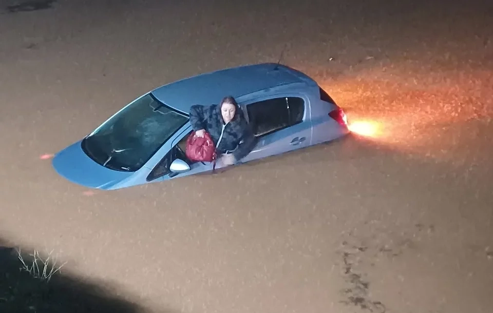 Lakonya’da sel tehlikesi nedeniyle 112 acil uyarı mesajı gönderildi; itfaiye ekipleri mahsur kalan iki kişiyi güvenli bölgeye taşıdı.