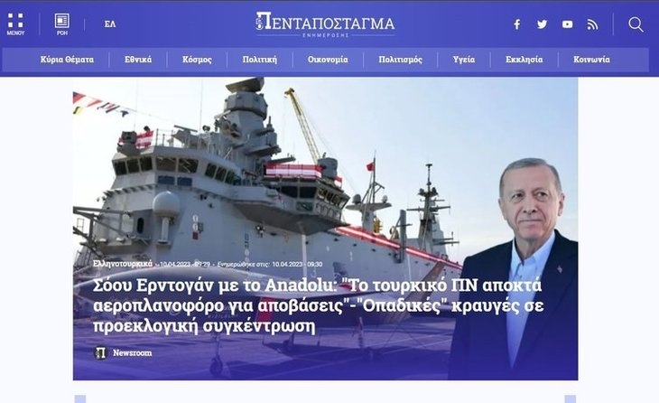 Pentapostagma'da yer alan bir diğer haberde ise, 'Türkler Ege için motorları ısıtıyor' ifadeleri kullanıldı.