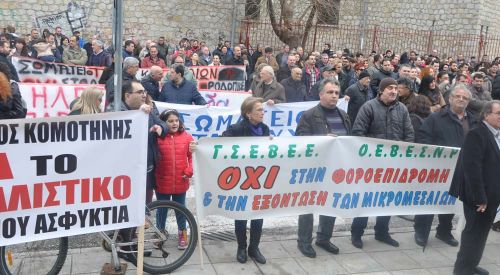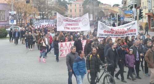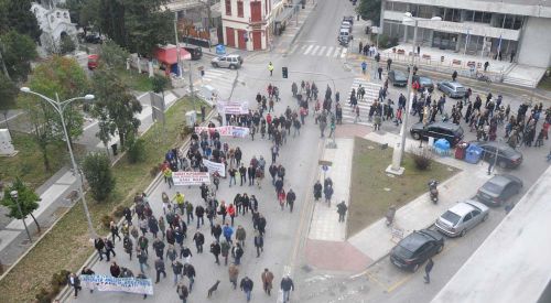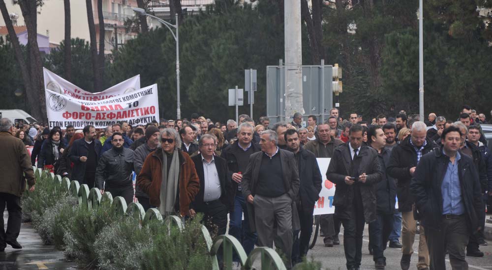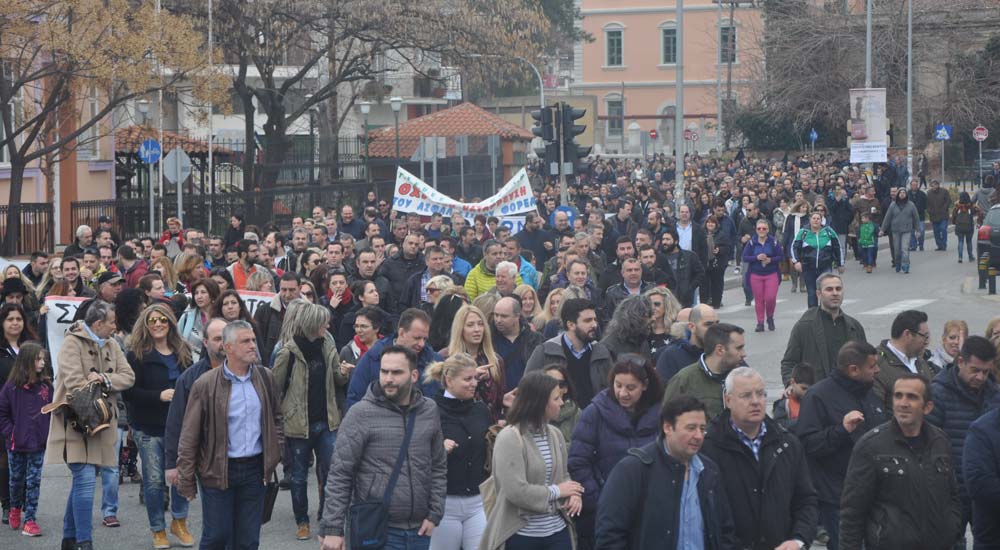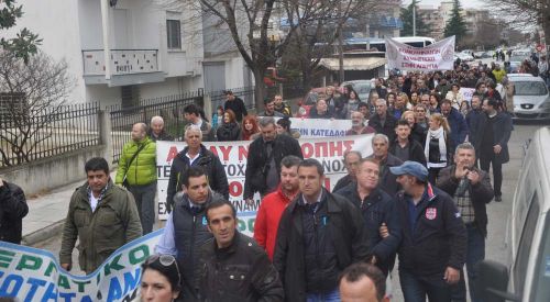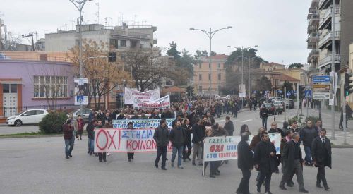 Gümülcine’deki greve katılan yaklaşık 2000 bin kişi hep birlikte protesto yürüyüşü yaptılar. Rodop Çalışma Merkezi önünden yürüyüşe geçen binlerce kişi, sırasıyla önce Doğu Makedonya Trakya Eyalet Başkanlığı binası önünden daha sonra Rodop Taşımacılık Şirketi KTEL’in önünden ve son olarak Gümülcine Belediye binası önünde geçereksorunsuz şekilde yürüyüşü şehir meydanında noktaladılar.