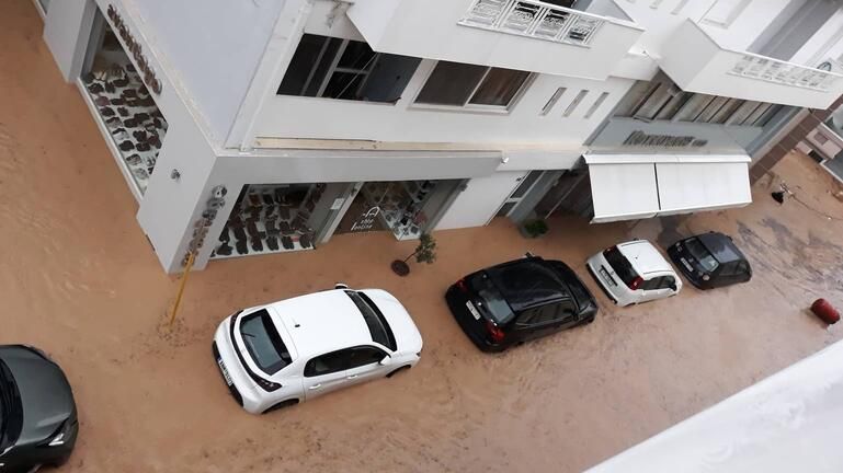 Yunanistan'ın en büyük adası Girit'in Kandiye kentinde şiddetli yağış nedeniyle meydana gelen sel felaketinde cadde ve sokaklar göle döndü, yüzlerce ev ve iş yeri de sular altında kaldı.