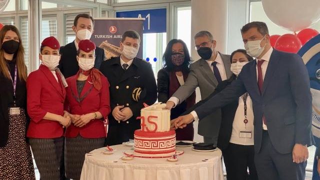 Eleftherios Venizelos Havalimanı'nda yapılan törene, Türkiye'nin Atina Büyükelçisi Burak Özügergin, THY'nin Yunanistan'dan Sorumlu Genel Müdürü Yavuz Akkaynak, Eleftherios Venizelos Havalimanı İletişim ve Pazarlama Direktörü Ioanna Papadopulu ile Türk ve Yunan davetliler katıldı.