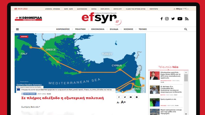 ABD'nin EastMed projesinden desteğini çekmesinin ardından efsyn.gr haber sitesi, "Dış politika tam bir çıkmazda" başlıklı analiz yazısıyla hükümeti topa tuttu.