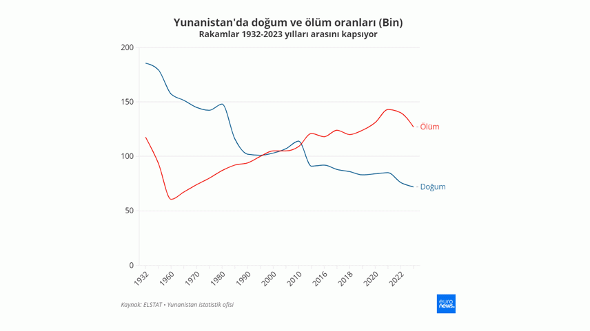 Yunanistan ise bu durumun en çarpıcı şekilde kendini gösterdiği Avrupa ülkelerinden biri. Bazı kasabalarda yıllardır tek bir doğum bile kaydedilmedi.