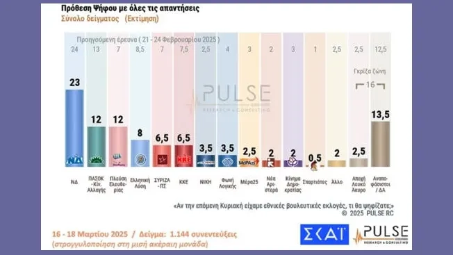 Pulse şirketinin Skai televizyonu için gerçekleştirdiği son anket, ülkede siyasi dengelerin giderek daha da belirsizleştiği yeni bir tabloyu gözler önüne serdi.