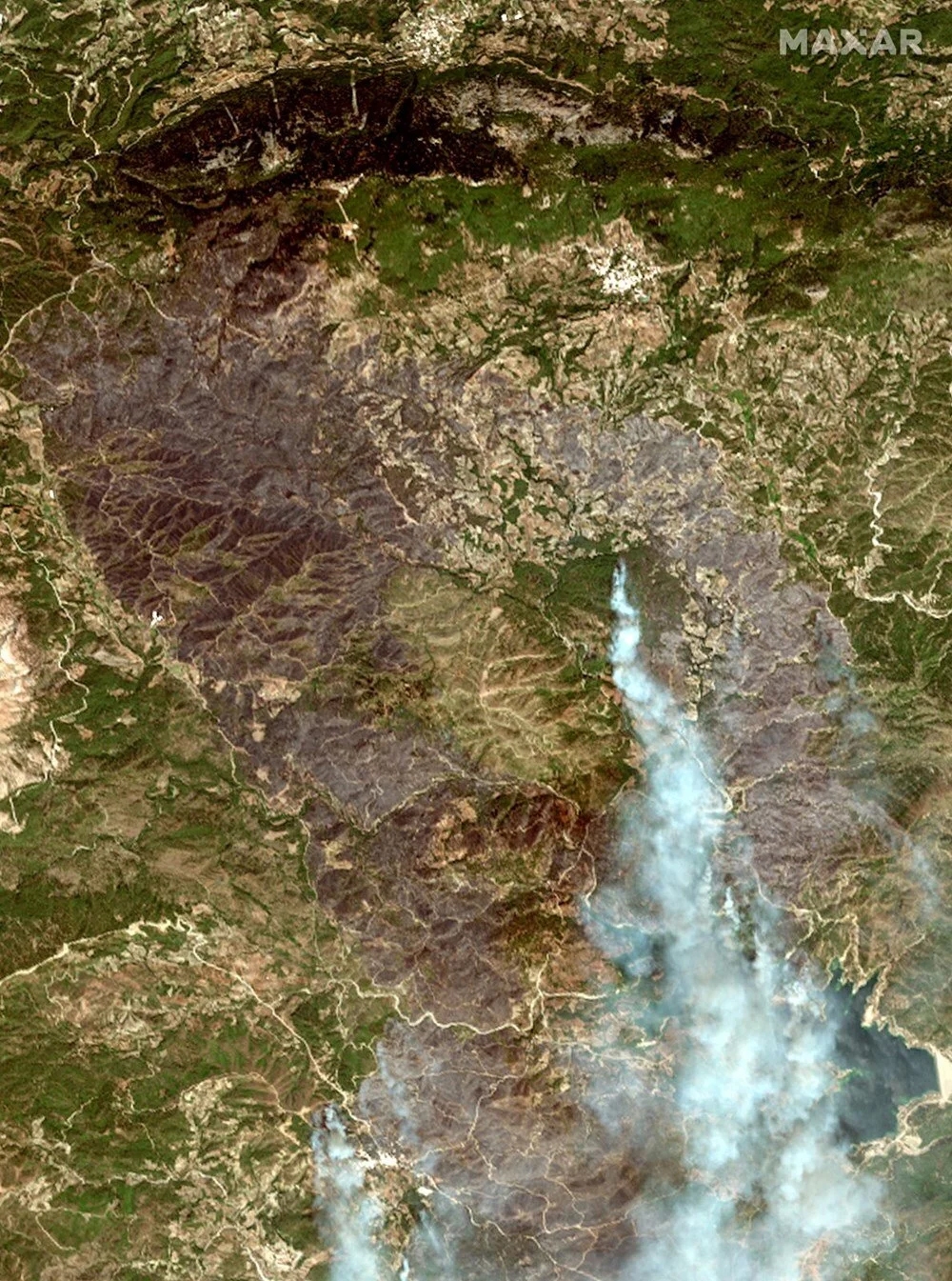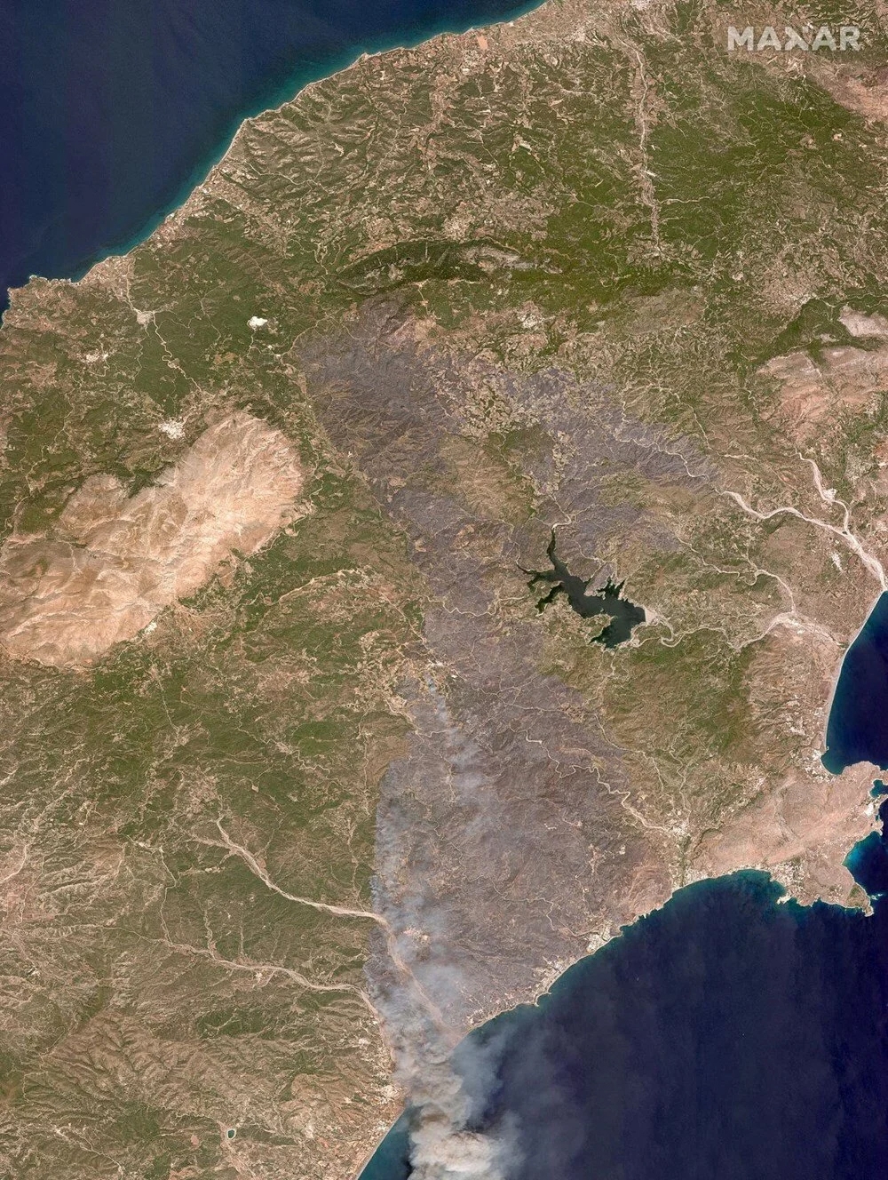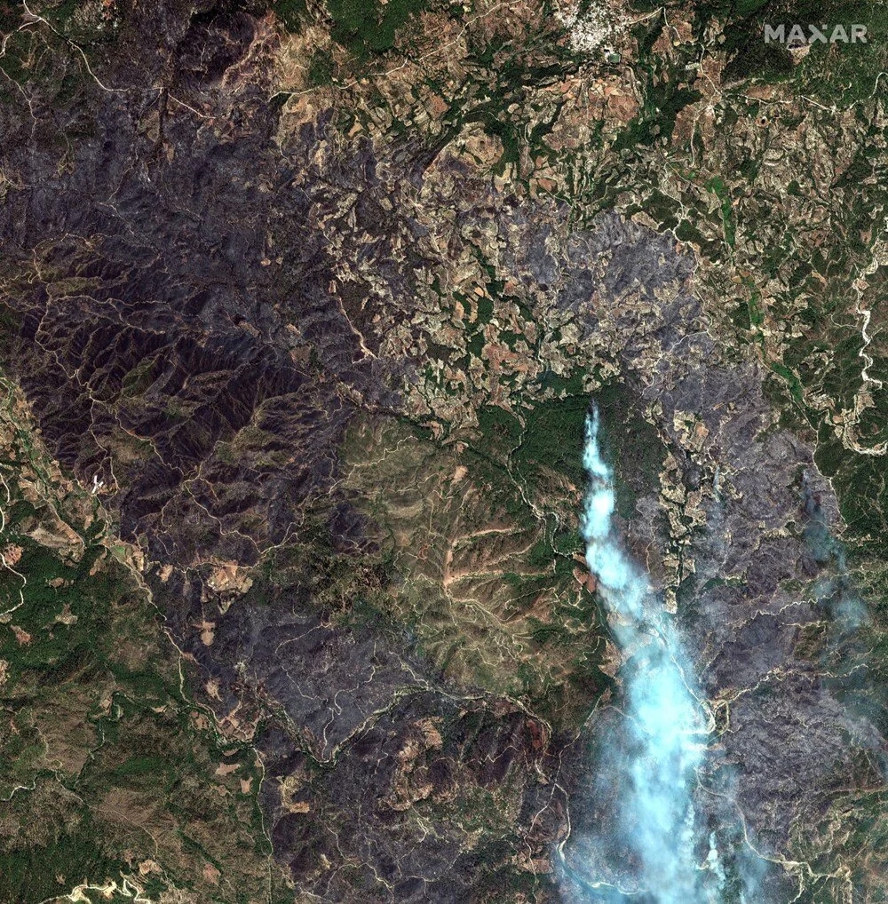 ABD’li uydu şirketi Mxar Technologies, Yunan adalarındaki yangınların uydu görüntülerini paylaştı.