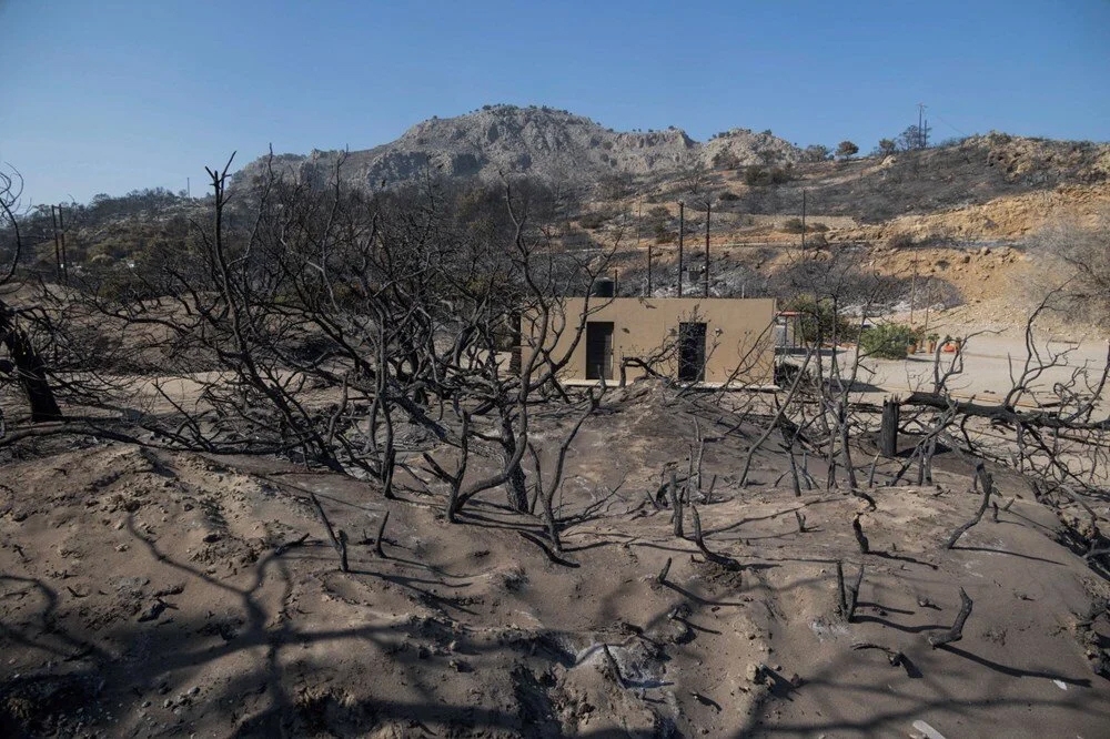 Rodos'ta adanın ortasından güneydeki Kiotari kasabasına kadar uzanan büyük bir alanın kül olduğu görüldü.