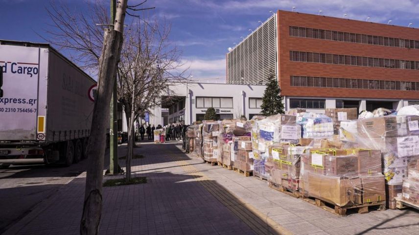 Yunanistan'da toplanan insani yardım malzemeleri, Orta Makedonya Eyalet Başkanı Apostolos Cicikostas'ın koordinasyonuyla 19 Şubat Pazar günü Selanik'ten yola çıkarıldı.